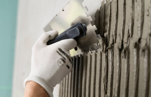 Application of stucco coatings on walls and ceilings, for decorative and protective purposes.